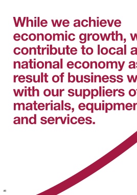 While we achieve economic growth, we also contribute to local and national economy as a result of business we do with our suppliers of raw materials, equipment and services. 46